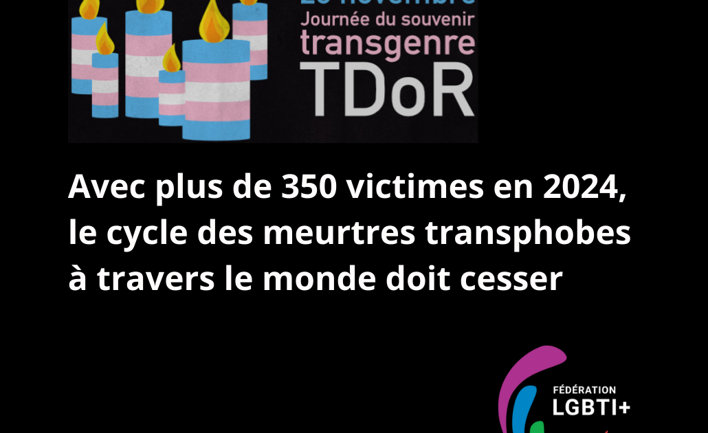 Ce 20 novembre est la Journée annuelle du Souvenir Transgenre. A cette occasion, la Fédération LGBTI+ et ses membres honorent la mémoire de toutes personnes transgenres assassinées par haine et préjugés du fait de leur transidentité,…